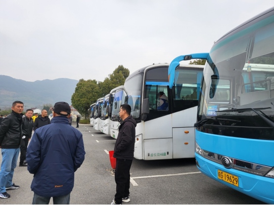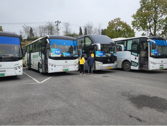 當(dāng)日,17臺電動大巴車按照事先安排,早上7時前提前來到市體育館等候,集結(jié)在此參賽人員在聯(lián)絡(luò)員的安排下,有序乘車入座,車輛全程穩(wěn)健行駛,一路安全高效地將參賽人員送達至九廊錢莊自然村參加活動。11時返程回到出發(fā)地,行程約100公里。