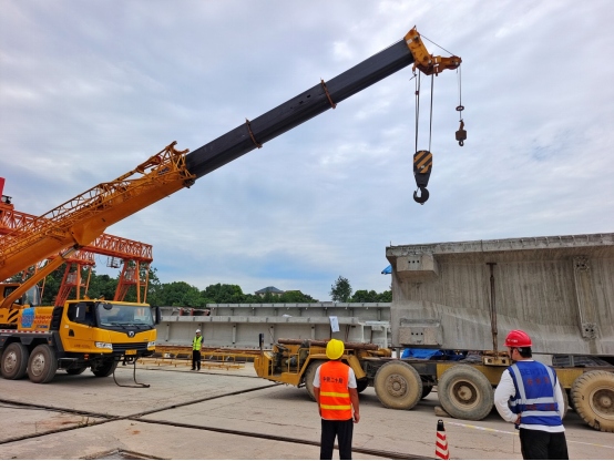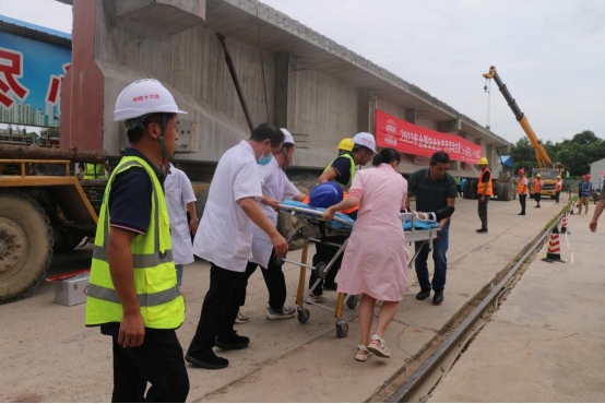本次演練采取現(xiàn)場(chǎng)實(shí)戰(zhàn)演練方式。充分模擬在梁體運(yùn)輸過(guò)程中,由于駕駛員操作失誤導(dǎo)致運(yùn)梁車(chē)側(cè)翻傾覆,人員緊急跳車(chē)受傷,梁體受損并存在安全隱患,需要立即啟動(dòng)應(yīng)急響應(yīng)程序的場(chǎng)景。