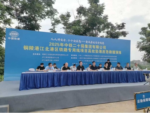 為筑牢鐵路施工安全防線,切實提升突發(fā)事故應急處置能力,6月25日下午,江北港鐵路專用線公司攜手廬江縣鐵路建設辦公室、羅河鎮(zhèn)人民政府,于江北港鐵路專用線項目跨合銅高速公路特大橋1#墩附近,聯(lián)合主辦了一場緊張有序的T梁架設高處墜落事故應急演練。此次演練由中鐵二十局集團有限公司銅陵港江北港區(qū)鐵路專用線項目經(jīng)理部承辦。