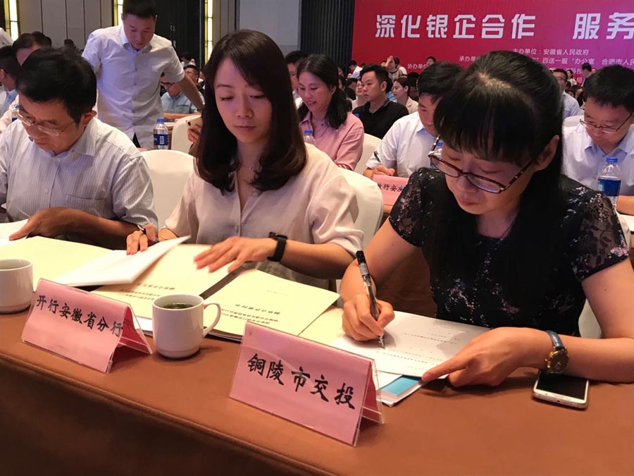 8月9日上午,全省銀企對接會在合肥召開。公司黨工委委員、副總經理范美霞代表公司參加會議并與國開行安徽省分行簽訂G3銅陵長江公鐵大橋項目意向書。