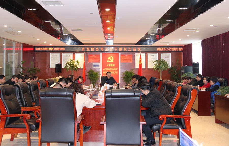 2018年2月22日下午,市交投公司召開全體干部職工會議,傳達學習貫徹22日上午市委、市政府召開的全市招商引資招才引智工作動員大會精神。會議指出,市委、市政府以深化供給側結構性改革和產(chǎn)業(yè)轉型升級為主線,堅持將招商引資、招才引智作為項目建設、經(jīng)濟發(fā)展的主抓手,年初第一天上班即召開“雙招雙引”動員大會,體現(xiàn)了對項目投資和建設工作的高度重視,公司上下要結合2018年公司轉型發(fā)展和各自崗位實際,認真貫徹全市動員大會精神,扎實做好市委、市政府布置給公司的招商引資招才引智工作任務。