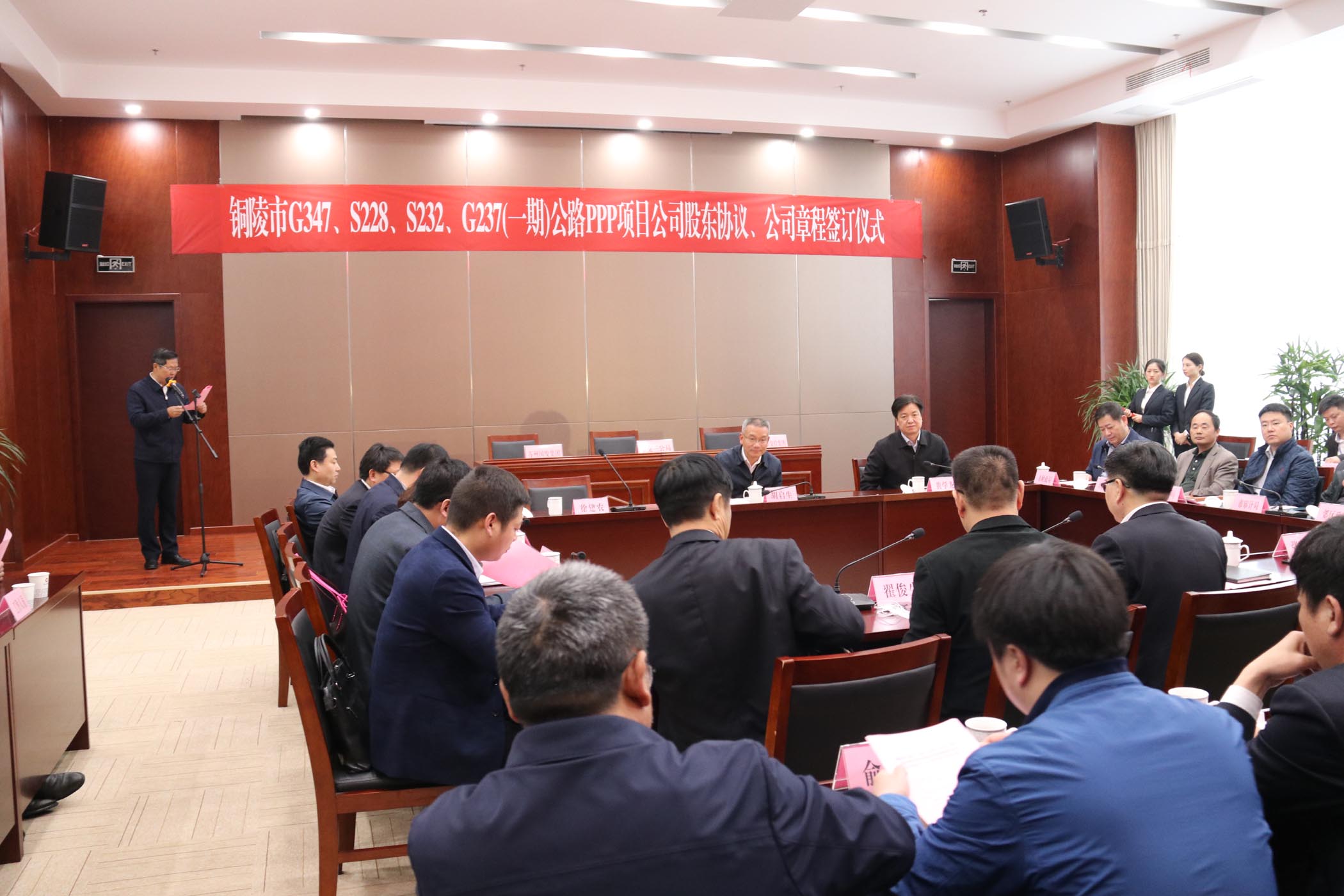 3月28日上午,我市國道347、省道228、省道232、國道237(一期)公路PPP項目公司股東協(xié)議及公司章程簽訂儀式在市綜合交通投資集團有限公司舉行。市委副書記、市長胡啟生,中交第三公路工程局有限公司黨委書記、董事長黃臘泉,蘇州國發(fā)集團總裁翟俊生,副市長黃學(xué)龍等現(xiàn)場見證。黃臘泉、翟俊生,市交投集團董事長何成龍簽訂四條公路PPP項目公司股東協(xié)議及公司章程。