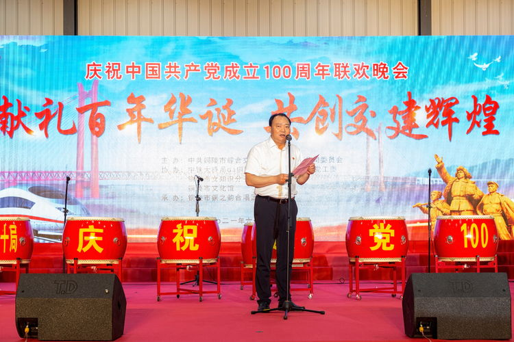 演出在中鐵二十局鼓樂隊表演的鏗鏘有力、歡快熱烈的鼓樂中拉開晚會序幕。集團公司黨員干部職工用《向往》《不忘初心》唱出了“交投人”堅定不移跟黨走、牢記使命建新功的心聲;配樂朗誦《黨旗下的輝煌交投》表達出交投兒女砥礪奮進、決戰決勝“十四五”,共創銅陵綜合交通基礎設施建設新輝煌堅如磐石的決心和力量。