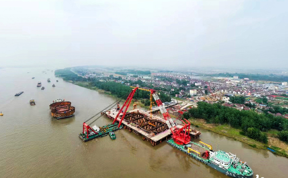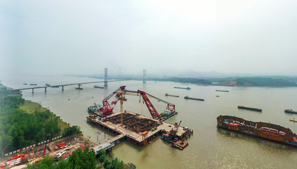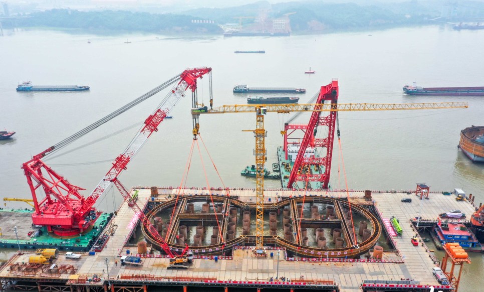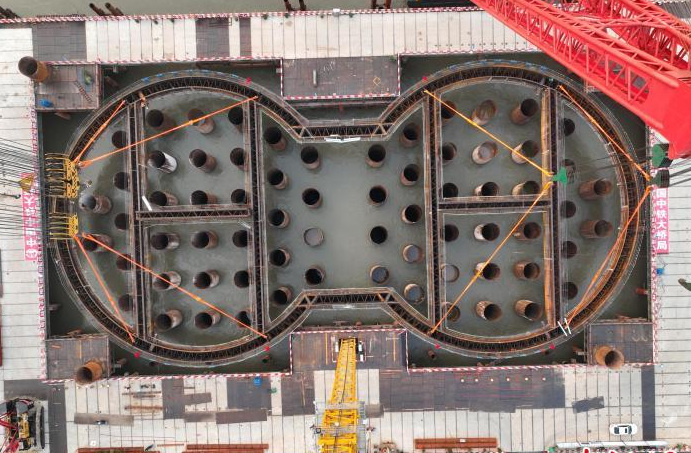 5月30日下午,隨著世界最大的圓啞鈴型鋼圍堰第一節、第二節準確吊裝就位,標志著由市交投集團投資建設、中國中鐵大橋局承建的世界首座雙層斜拉-懸索協作體系大橋——G3銅陵長江公鐵大橋3號主塔墩正式轉入大體積承臺施工階段,大橋建設取得重大進展。