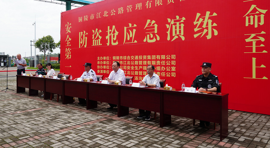 (八)6月29日上午,集團公司安全生產領導小組在江北公路管理有限責任公司組織開展2022年防盜搶演練活動,市公安局黨委委員、常務副局長駱后來、集團公司黨委書記、董事長何成龍及部分黨委班子成員出席活動,各子公司、各項目主要負責任人參加本次活動。