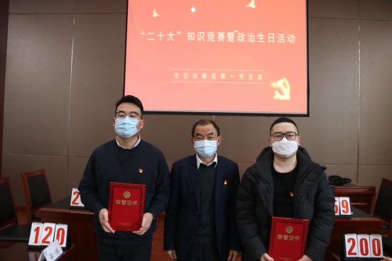 2023年1月12日上午,集團公司第一黨支部舉辦“黨的二十大”知識競賽和“政治生日”活動。集團公司黨委書記、董事長何成龍、黨委副書記方勁松、黨委委員、紀委書記章新華均以普通黨員身份參加。