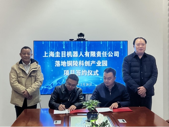 2月20日下午,上海圭目機器人有限公司落戶銅陵科創產業園簽約儀式在集團公司舉行。集團公司黨委書記、董事長何成龍,海貝資本總裁葛平出席并見證簽約。集團公司董秘、銅陵科創產業園有限公司董事長凌昌盛與上海圭目機器人創始人、董事長桂仲成共同簽署協議。