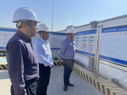 在蚌埠市,龍道寧一行赴中廣核新能源安徽有限公司固鎮分公司固鎮縣儲能電站項目現場,通過實地參觀、聽取情況介紹等,詳細了解了儲能項目建設情況,并就儲能項目建設投資、運營過程中的相關問題進行了深入交流探討。