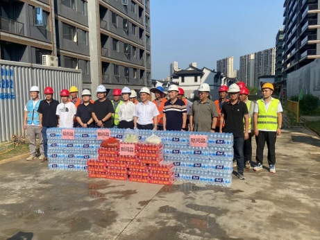 8月6日上午,銅官區(qū)委副書記、區(qū)長陳潔率隊前往鳳起宸鳴府項目現(xiàn)場,慰問在高溫下工作的一線勞動者,并送去礦泉水等防暑降溫用品。交投置業(yè)總經(jīng)理趙麗及項目相關(guān)負責人陪同。