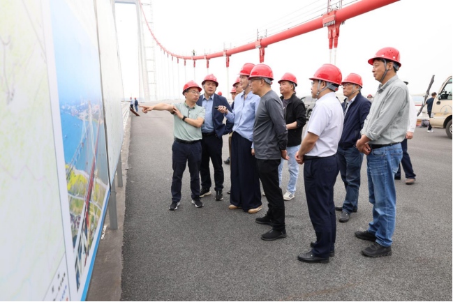 在G3銅陵長江公鐵大橋項目現場,調研組實地考察大橋建設進展。隨后,在中鐵大橋局G3橋項目部會議室召開銅陵鐵路項目座談會,與會人員共同觀看了G3公鐵橋建設短視頻,聽取了G3公鐵橋的建設進展情況。作為世界首座雙層斜拉-懸索協作體系公鐵大橋,其主橋鋼桁梁已于2024年合龍,目前進入附屬工程收尾階段。項目創新成果顯著,已取得14項專利及多項工藝突破,施工效率創長江中下游橋梁建設新紀錄。