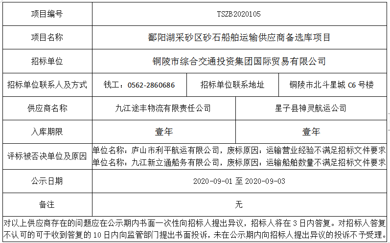 招標單位:銅陵市綜合交通投資集團國際貿易有限公司