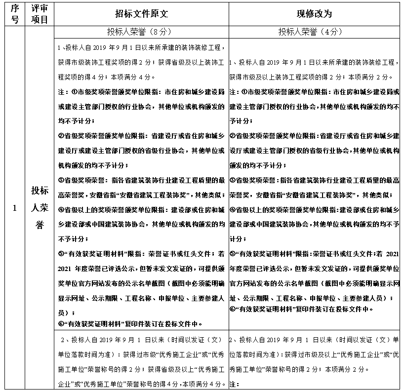 1、招標(biāo)文件的“評標(biāo)辦法”的部分內(nèi)容修改如下: