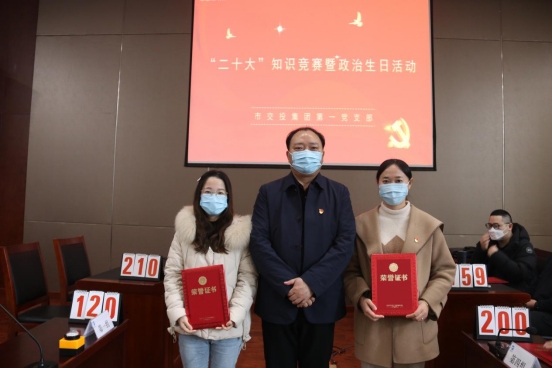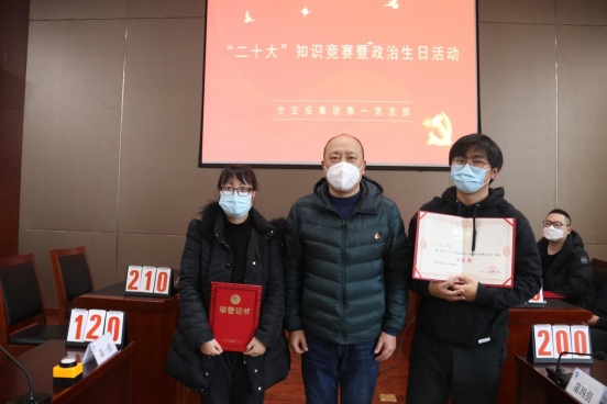 2023年1月12日上午,集團公司第一黨支部舉辦“黨的二十大”知識競賽和“政治生日”活動。集團公司黨委書記、董事長何成龍、黨委副書記方勁松、黨委委員、紀委書記章新華均以普通黨員身份參加。