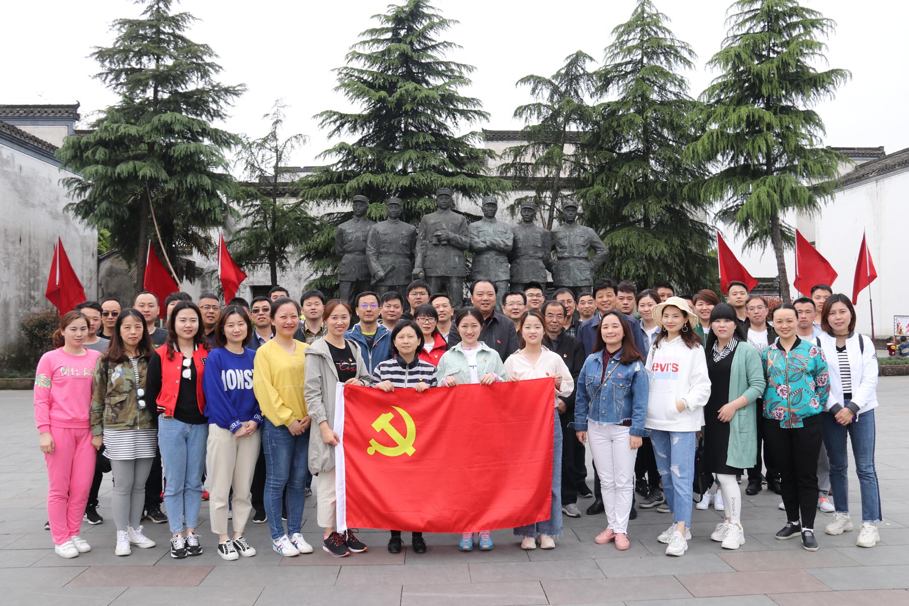 在巖寺新四軍軍部舊址紀(jì)念館廣場,公司全體黨員職工集體瞻仰了新四軍六將領(lǐng)雕像,表達(dá)對革命先輩的深切緬懷和無限敬仰。