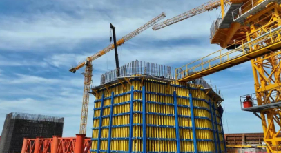 9米節(jié)段液壓爬模的使用是一次挑戰(zhàn)、一次跨越、一次革命。標(biāo)志著主塔施工裝備邁上了新臺(tái)階,為實(shí)現(xiàn)主塔智能化、綠色化、快速化建造,項(xiàng)目部開展了各項(xiàng)創(chuàng)新研究。一是采用大噸位高爬架液壓爬模,架體連成整體,在爬升、澆筑中更加平穩(wěn)、安全。二是配置液壓脫合模系統(tǒng),替代傳統(tǒng)手動(dòng)機(jī)械脫模,提高了脫模工效。三是采用智能液壓控制系統(tǒng),實(shí)現(xiàn)同步爬升。配置視頻、風(fēng)速、壓力、位移等信息反饋智能監(jiān)控系統(tǒng),實(shí)現(xiàn)對(duì)結(jié)構(gòu)、環(huán)境、養(yǎng)護(hù)實(shí)時(shí)監(jiān)測(cè)。四是自帶智能養(yǎng)護(hù)系統(tǒng),實(shí)現(xiàn)混凝土冬季自動(dòng)蒸養(yǎng),其他季節(jié)造霧養(yǎng)護(hù)。五是設(shè)置專用電纜線槽、豎直旋梯、衛(wèi)生間、消防水箱、專用排污管道,實(shí)現(xiàn)標(biāo)準(zhǔn)化作業(yè)、綠色施工。