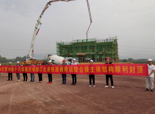 9月8日上午,隨著最后一方混凝土澆筑完成,在項目建設、監理及施工單位管理人員的見證下,由中鐵十六局集團負責施工的銅陵港江北港區鐵路專用線項目橫埠站綜合樓順利完成主體結構封頂,成為全線首座整體封頂的車站主體建筑,標志項目房建工程取得了階段性成果。
